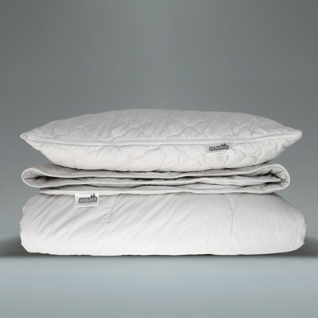 Natürlich schlafen im Doppelpack – mit dem Barbuda Hanf-Schlafset | Bettdecke & Kopfkissen